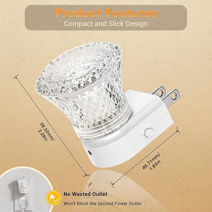 - Verstaile Use: Ideal for bedrooms, bathrooms, hallways, and more, this nightlight is perfect for both kids and adults. Its compact plug-in design makes this nightlight easy to install and use in any standard wall outlet.