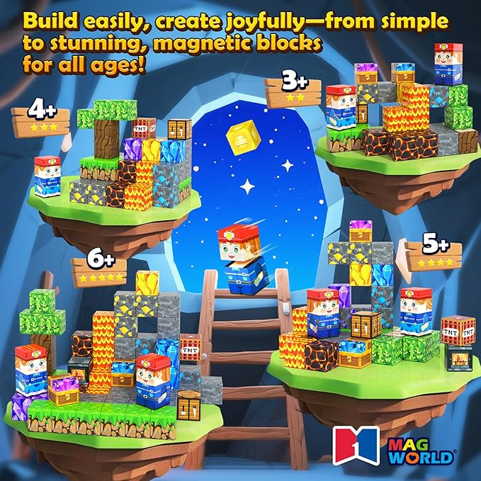 - OPEN-ENDED MAGNETIC BLOCKS: Magnetic Building Blocks Travel set sparks endless possibilities and turns child's imagination into reality. The Magworld magnetic toy contains mineral cave and grassland elements and an instruction manual with different building ideas, allowing kids to build mine magnet world