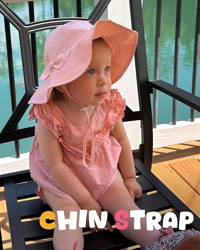 - Easy to Wear: The baby hats are lightweight and foldable for convenience. The adjustable chin strap keeps the hat secure. The perfect sun hat for babies, ideal for travel and outdoor activities like the beach, pool, backyard, and more.