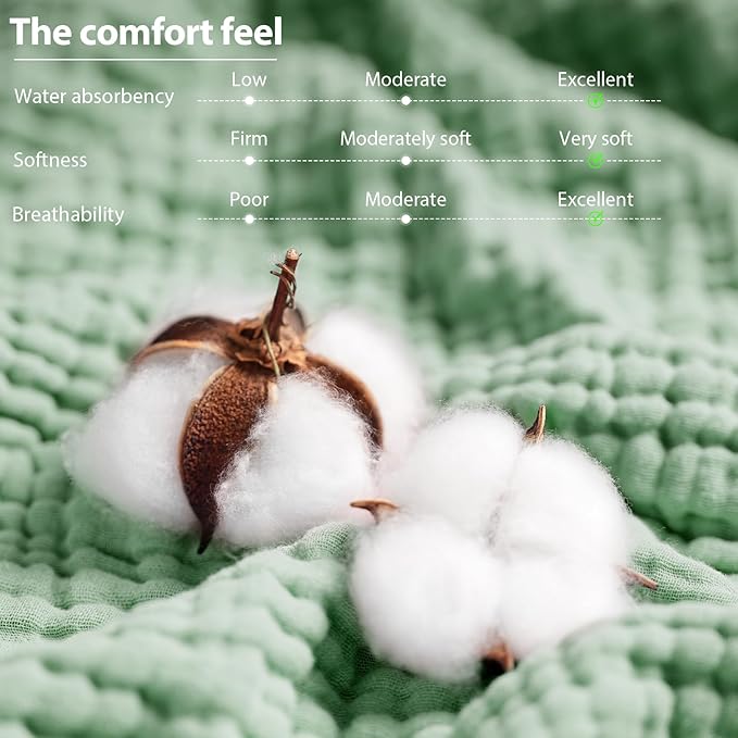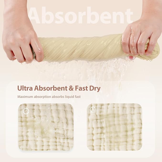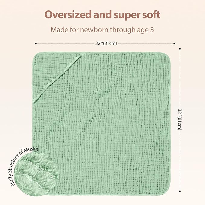 - Exceptional Absorbency: The 6-layer muslin design is favored by the public for its optimal thickness, easy drying without moisture. Muslin baby towels with hood excel in water absorption, making your baby stays dry and warm from head to toe after bathing.