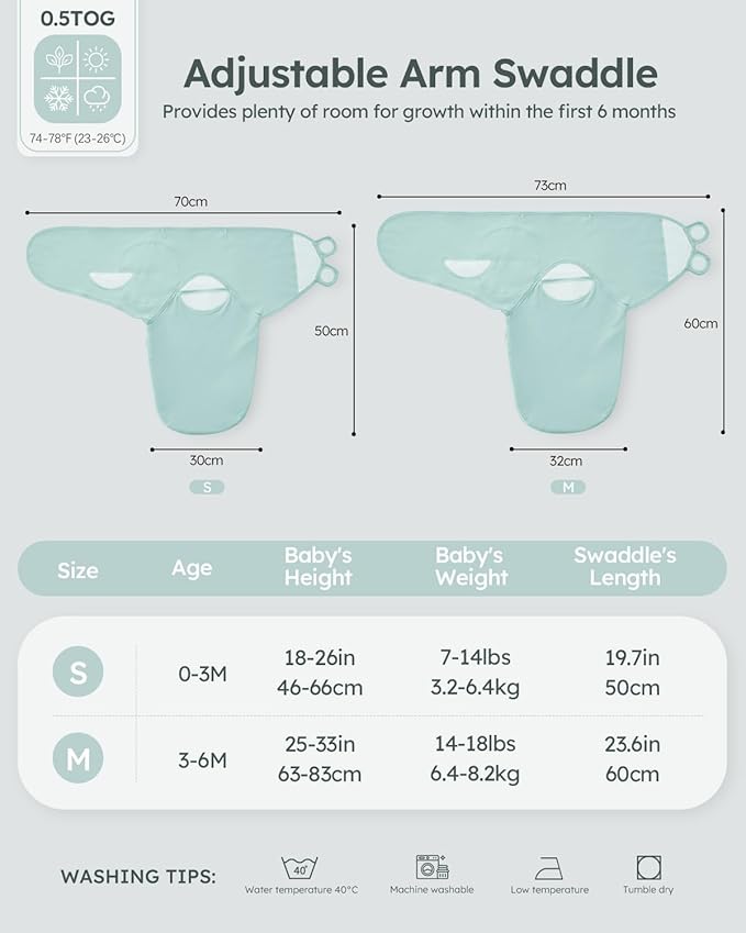 - Machine-Washable & Durable: Made with premium stretch-knit fabric, this swaddle sleep sack is not only soft and gentle but also built to last. It is machine washable and retains its shape to ensure your baby has a cozy sleep experience every night.