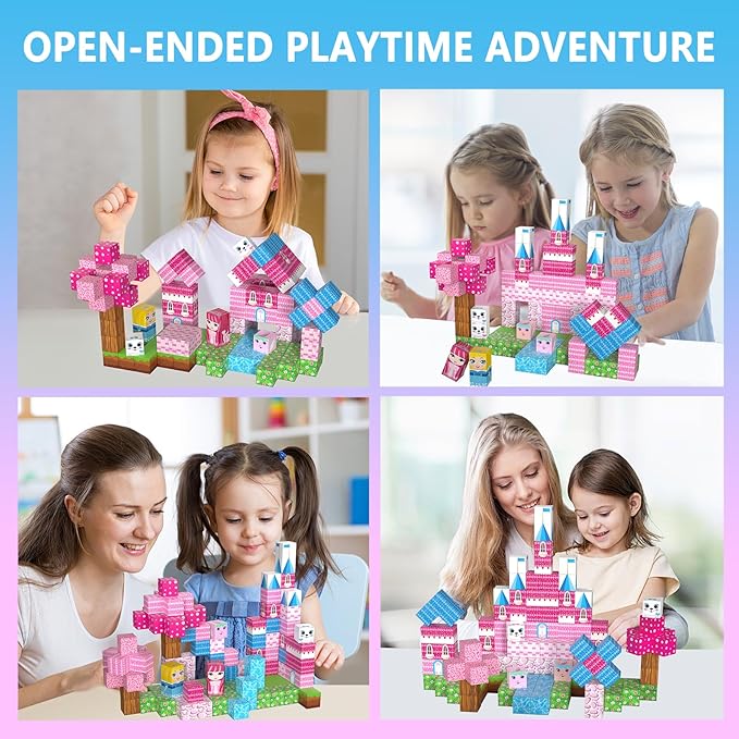 - 【IMMERSIVE BUILDING EXPERIENCE】: The magnetic building blocks contain 28 patterns with rich and bright colors to stimulate girls' curiosity and imagination. Our magnetic open-ended building block toys, each magnetic cube can be easily spliced to achieve infinite stacking, providing children with unlimited creative possibilities to explore and build their own fantasy world.