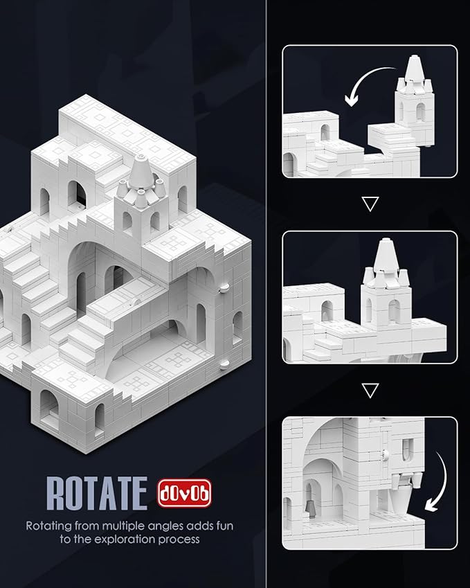 dOvOb Architectural Transformable White Castle Building Blocks Set - 668PCS Construction Magic Maze Mode Collectible Display Set for Adults and Teen