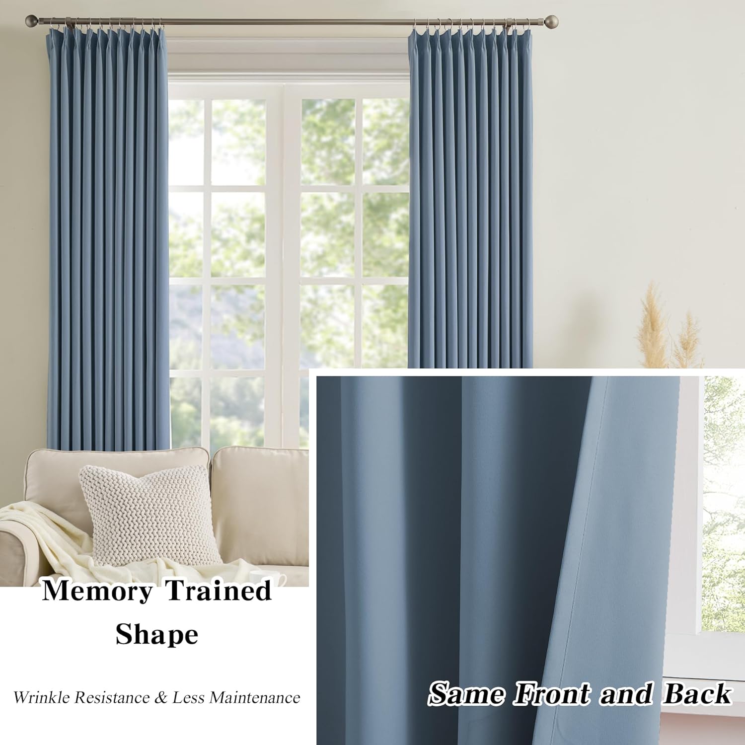 - Pinch Pleatd Curtains: These pinch-pleated curtains, which offer blackout functionality, seamlessly blend with any home decor style, enhancing the elegance and sophistication of your bedroom, living room, dining room, home office, playroom, and farmhouse-inspired interiors. KEQIAOSUOCAI pinch pleated curtains help you create nurturing spaces that evoke a soothing and tranquil ambiance.