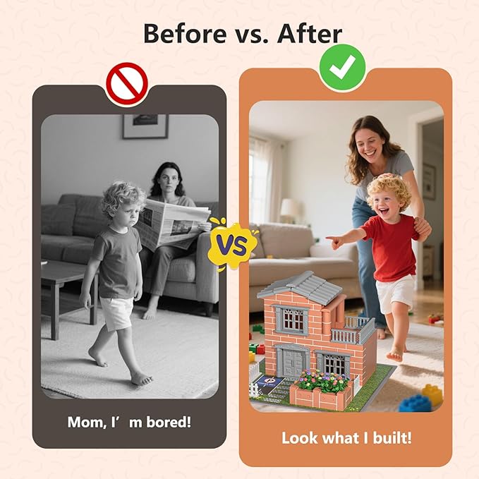 - Saturday Building Ritual - Transform weekends into cherished family traditions! Watch as your child recreates your actual home in miniature - right down to doghouse. The perfect antidote to busy schedules.