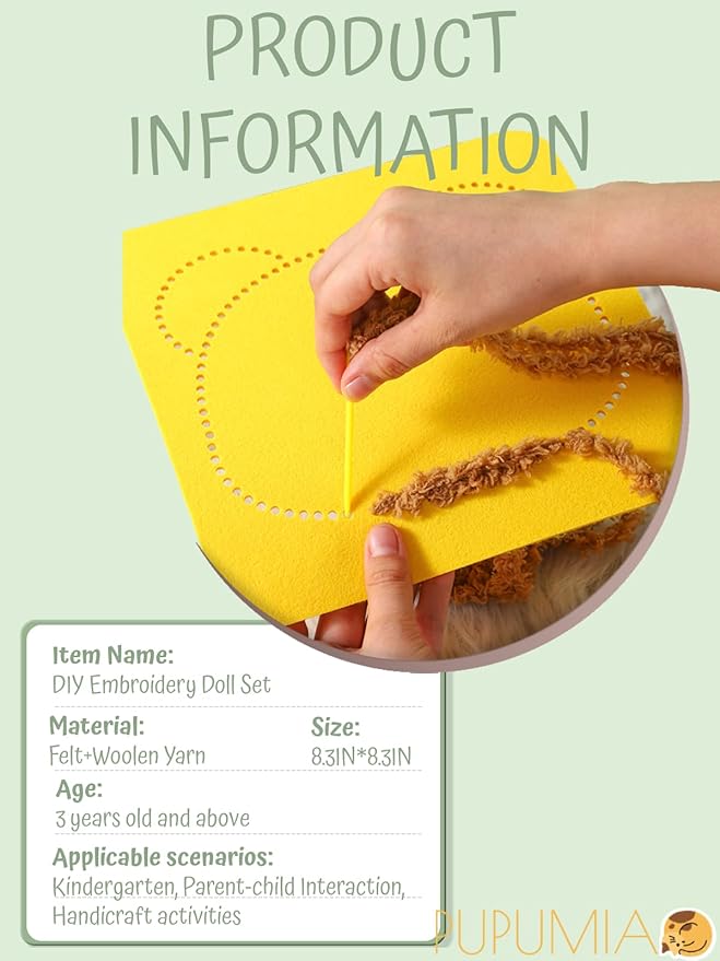 - DIFFERENT MATERIALS - Compare with other similar DIY embroidery sewing kit, ours kit contains thicken felt baseplate which is more durable and not easily deformed. High-quality soft coral fleece yard of vivid colors and safe and non-toxic jumbo needle tool, make PupuMiao embroidery kit for kids perfect for children's crafts, DIY projects and handicraft class
