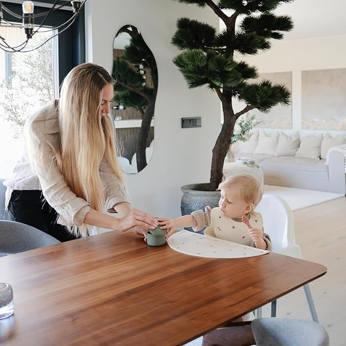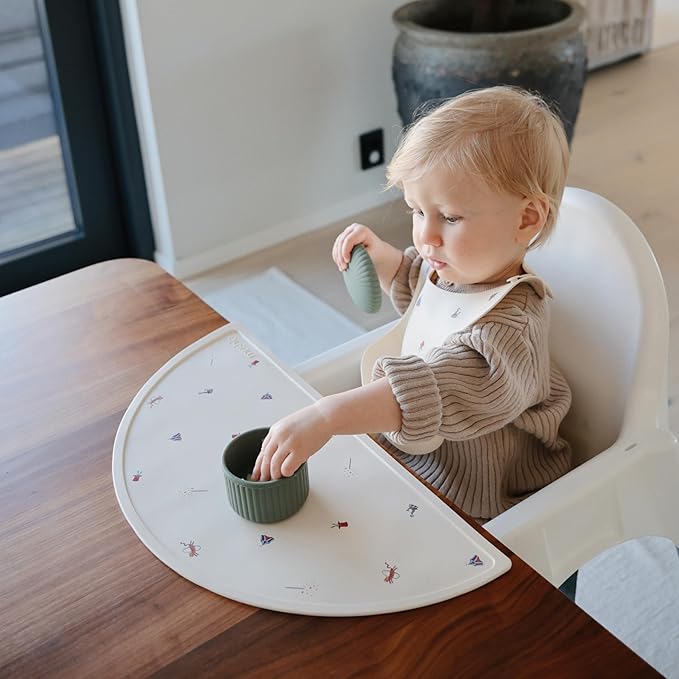 - Mess Free Mealtimes: Keep your little one clean with our fun-loving collection of silicone placemats. Designed in Sweden, our silicone mats feature classic patterns capturing a look that's both timeless and elegant. Colors pair well with our silicone bibs, bibs pacifier, and mushie pacifier clips.