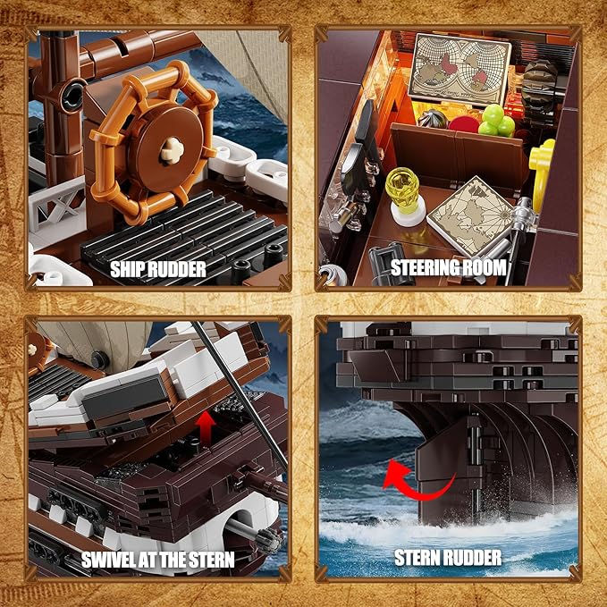 - 【Creative Gifts for Building Block Enthusiasts】This set of classic pirate ship themed blocks comes packaged in a beautiful box.It includes clear,colorful instructions and essential assembly tools,making it suitable for enthusiasts of all skill levels.Assembling it allows you to enjoy leisure and pleasant times with your family and friends.
