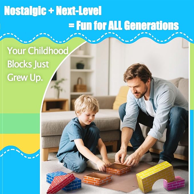 - Lightweight Yet Durable: This jumbo cardboard building block set is perfect for kids to stack, build and create. Made of durable, Heavy Duty cardboard withstand rough play. These large bricks are lightweight and easy for small hands to handle, making them suitable for kids of all ages. Come with Instructions for easy understanding by kids