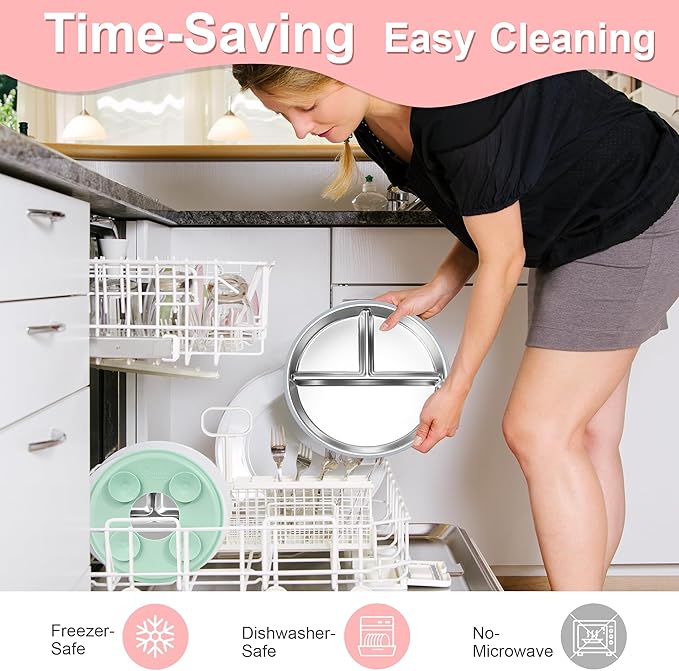 - Clean Taste with Safe Materials: Unlike all-silicone plates that sometimes leave a soapy taste, this food-grade, BPA-free and lead-free stainless steel plate keeps food tasting fresh