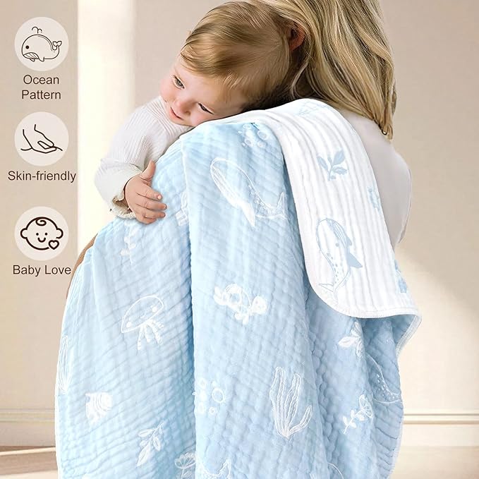 - Soft with Enhanced Durability: Our baby blanket is made of 70% cotton and 30% rayon, offering a lighter, softer, and more skin-friendly feel compared to ordinary organic cotton. The six-layer yarn weaving process improves overall durability and moisture-wicking performance, ensuring long-lasting comfort