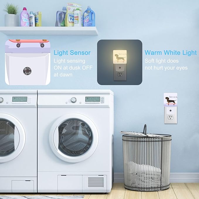 Funny Dachshund on Skateboard Plug in Night Light with Auto Dusk to Dawn Sensor,Warm Night Lights for Boys Girls Bedroom Bathroom Hallway Kids Room Gifts