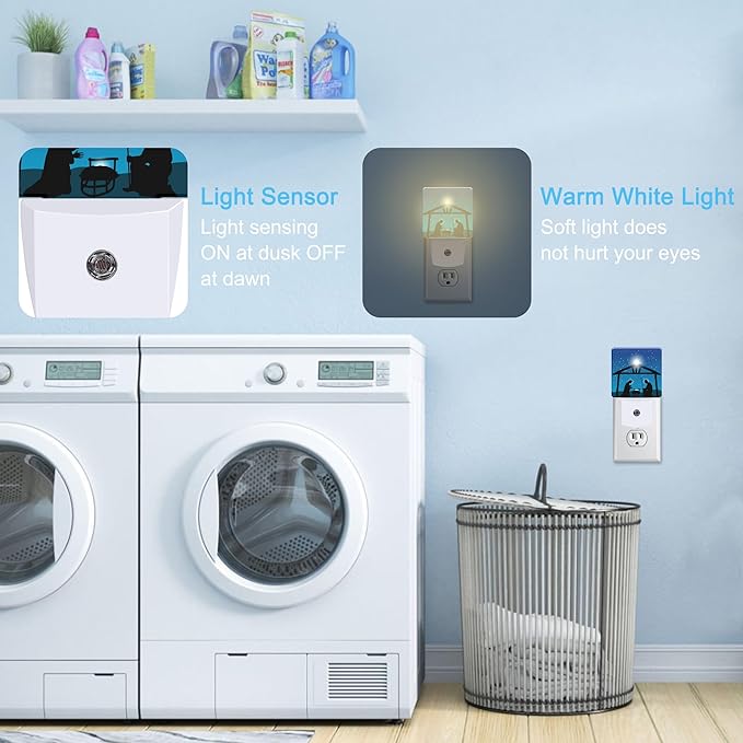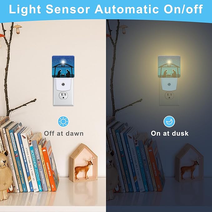 Christmas Christian Nativity Scene with Jesus Plug in Night Light with Auto Dusk to Dawn Sensor,Warm Night Lights for Boys Girls Bedroom Bathroom Hallway Kids Room Gifts