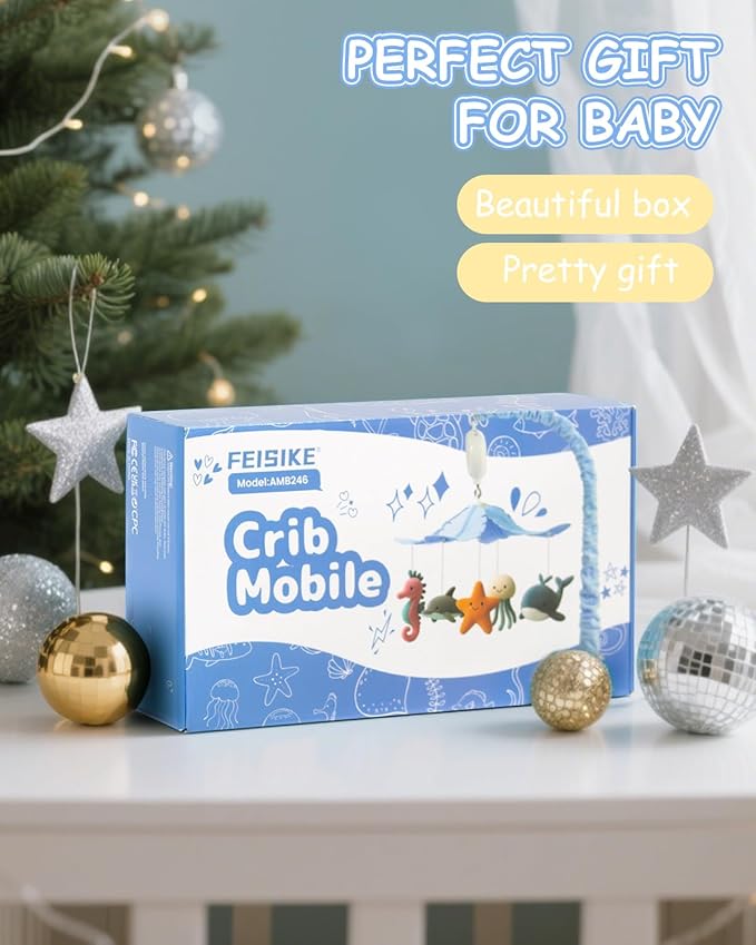 FEISIKE Baby Crib Mobile with 35 Lullabies, 3 Modes Rotation & Music, Adjustable Volume, Nursery Decor for Boys and Girls (Ocean Theme)