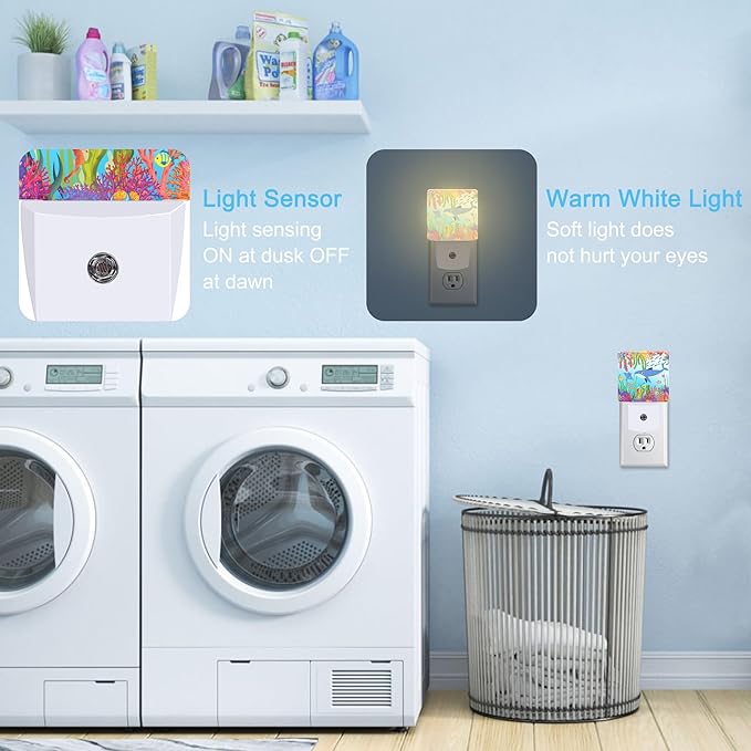 Sea Shark and Coral Plug in Night Light with Auto Dusk to Dawn Sensor,Warm Night Lights for Boys Girls Bedroom Bathroom Hallway Kids Room Gifts