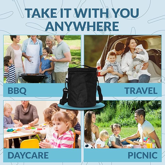 - 🎒 HOW TO CARRY YOUR CHILD’S FOOD WITHOUT STRESS? Includes a premium insulated bag that keeps food fresh and organized—perfect for daycare, family trips, or picnics. Take everything in one secure, stylish place.