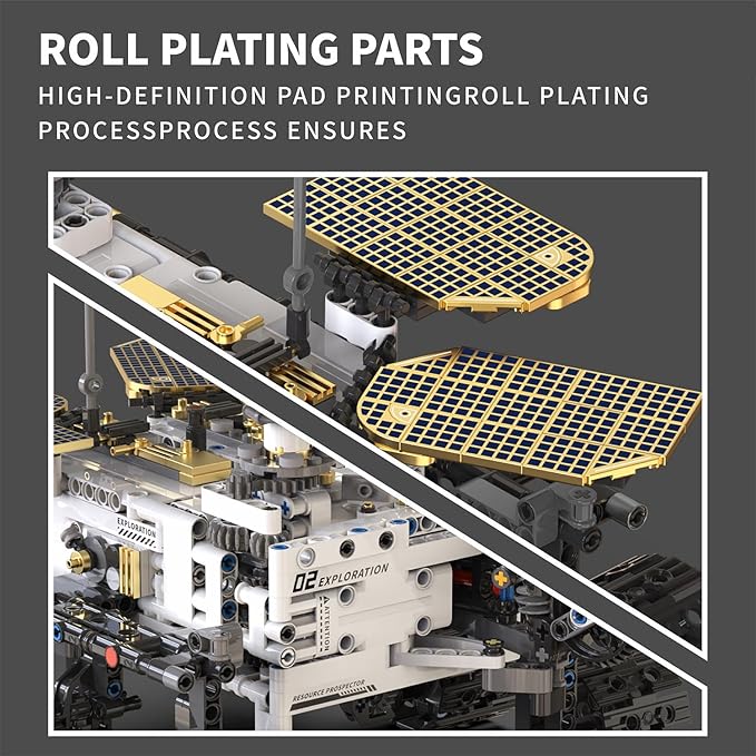 - REALISTIC DETAILS: the Mars Rover's head can rotate flexibly, the probe arm can swing back and forth, and the wheels made of upgraded materials can rotate 360 degrees, so it can perfectly cope with all kinds of terrain