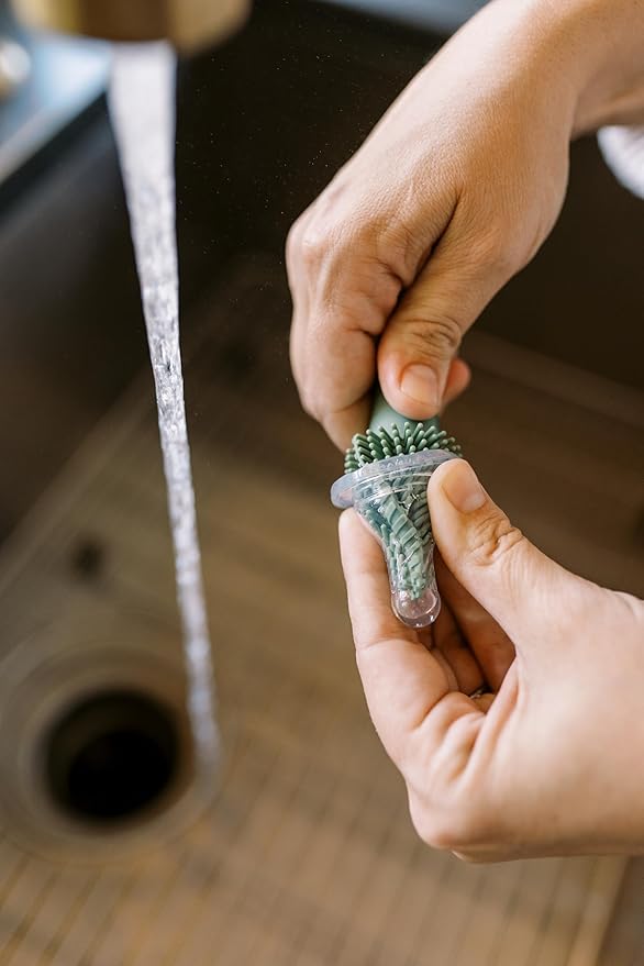 - NO SCRATCHING. Soft silicone bristles clean without scratching surfaces.