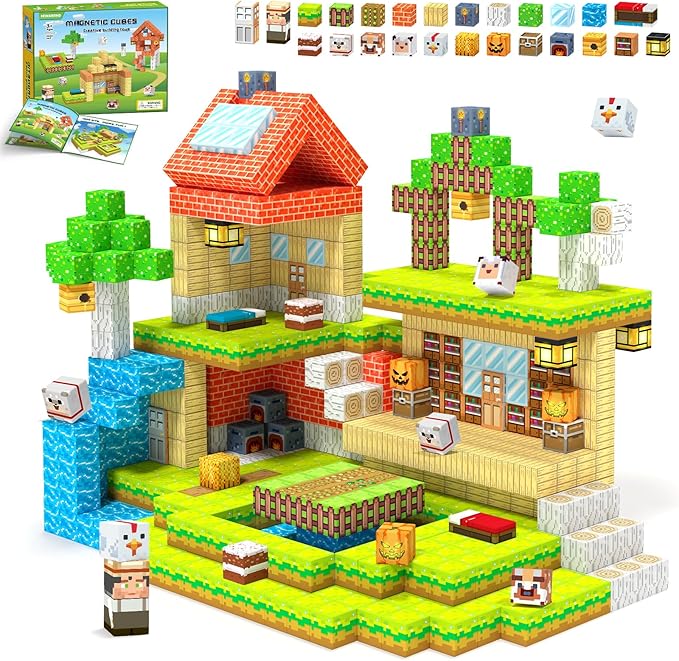 - Magnetic Blocks Set–The 80-piece (1x1x1IN) magnetic building blocks set features dual play zones: working farm outdoors and cozy living house indoors. It contains 28 lively pattern designs, The kid-friendly designed manual makes building effortless - Kids 3+ can proudly build independently, developing STEM skills while playing their dream farm games, boosting confidence, concentration and creative thinking!