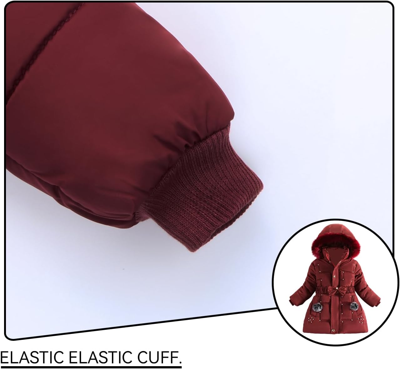 - Material: this waterproof snow parka jacket is made of 100% polyester fiber and is filled with artificial down filling, providing better insulation in cold winters. high quality fleece lining is very soft and essential for your little girl wardrobe