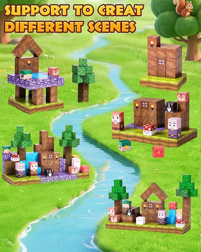 - Medieval Forest Adventure World: Use our 126pcs magnetic building blocks to create your own unique adventure world, with grasslands, forests, rivers, puppies, ducks, mushrooms, squirrels, forest cabins, as well as knights and princesses. Build a forest cabin and follow the knights and princesses on a forest adventure journey. Magnetic building blocks open up a dream world full of possibilities for kids, ranging from simple to challenging constructions. Let kids' imagination be fully utilized.
