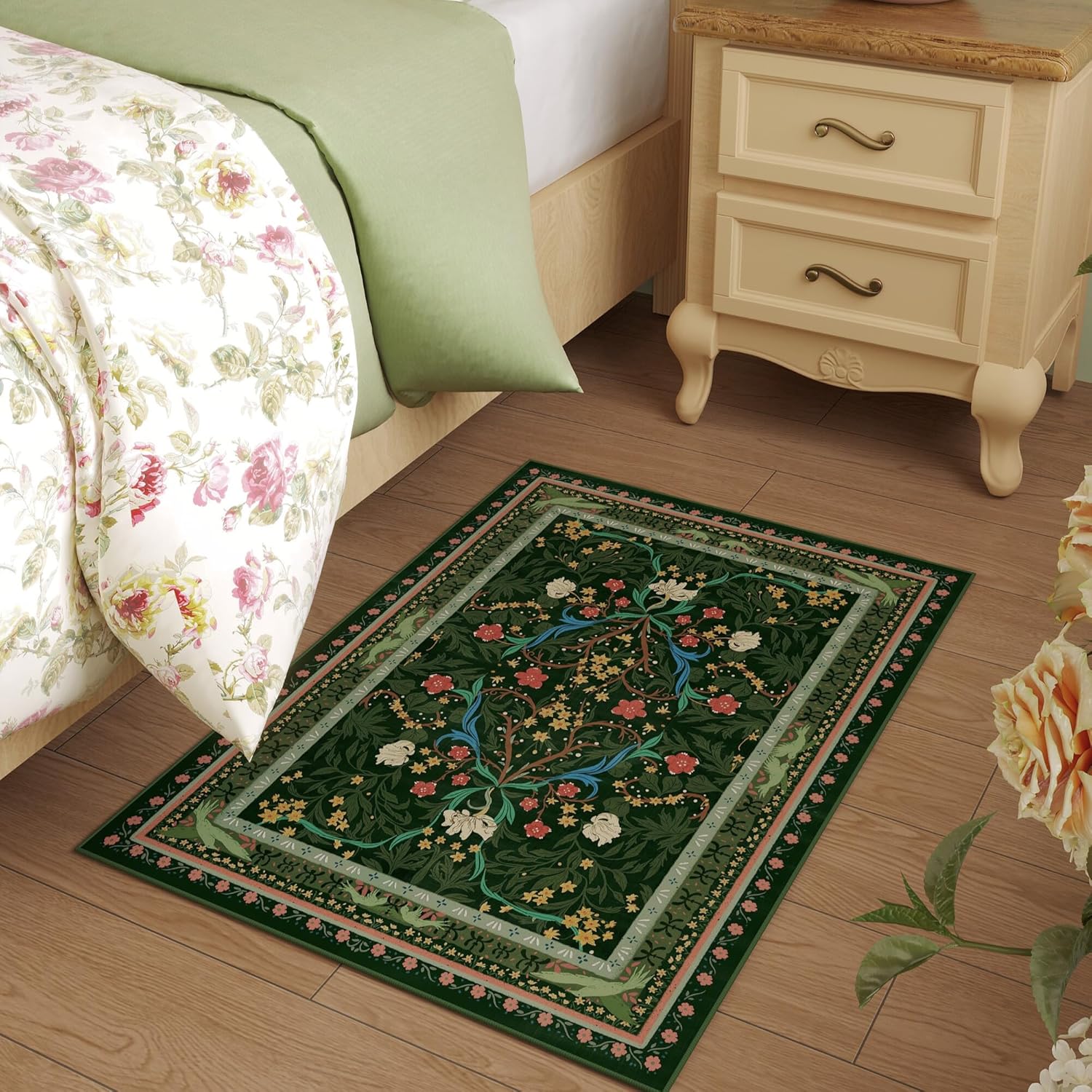 - Non-Slip Rug—Textured TPR-coated backing ensures secure placement—no extra pad required. Vintage floral botanical patterns add dynamic charm to living rooms, bedrooms, dining areas, entryways, playrooms, home offices, kitchens, and more.