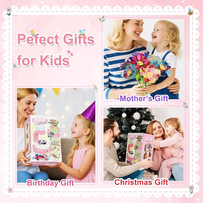 - Perfect Gift for Kids: This flower bouquet kit is an ideal gift for children ages 4–12. Whether it’s for a Birthday, Christmas, Easter, Children’s Day, or summer break, this craft toy set offers endless creative possibilities. The creative craft kit is a thoughtful and fun gift idea—especially for girls who love crafting and hands-on activities.