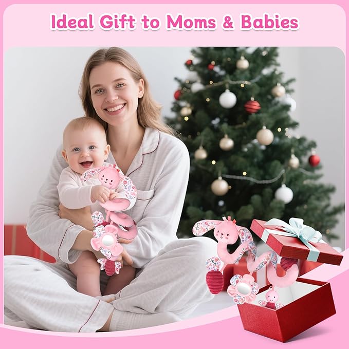 Hanging Car Seat Toys, Spiral Crib & Stroller Activity Toys with Rattles for Babies 0-6 Months, Baby Car Seat Accessories Toy for Developing Sensory & Motor Skills, Gift for Newborn Infant - Rabbit