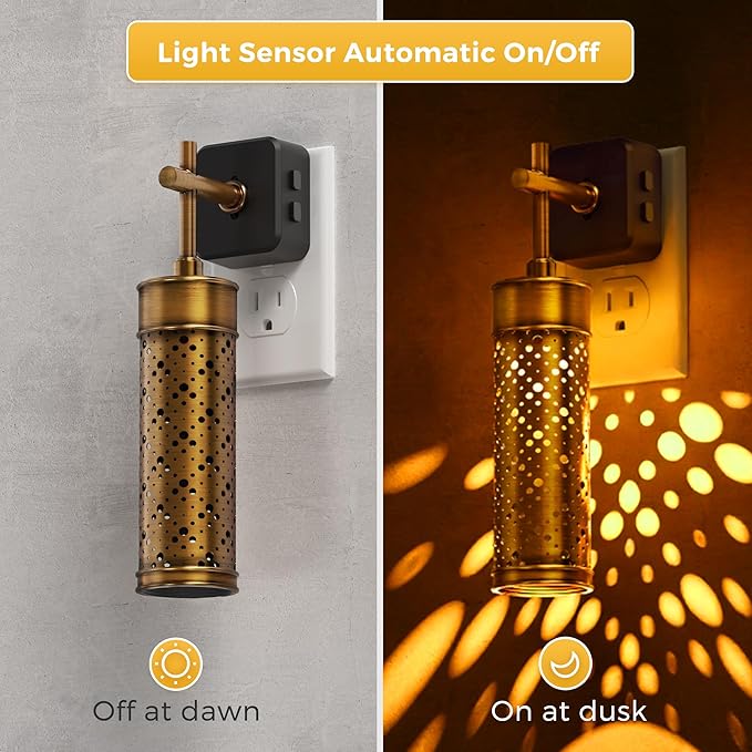 - Auto ON/OFF: Dusk to dawn sensor vintage nightlights can automatically turn the night light off during the day and on at night. Just be attention to keep a certain distance(over 1M) between two night lights, otherwise it may cause interference.