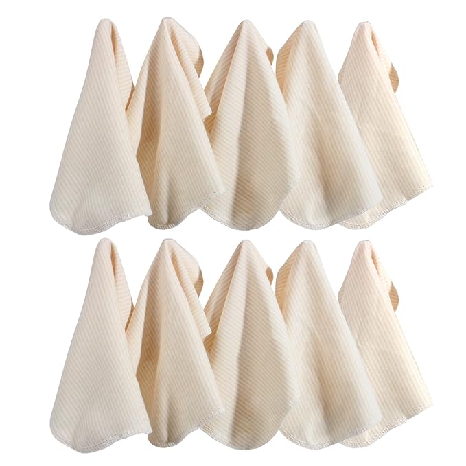 Organic Cotton Baby Washcloths - 10 Pack | Ultra-Soft Newborn Face Bath Towel - Reusable Baby Wipes for Delicate Skin Thin & Lightweight, Perfect for Babies, Kids, Toddlers, Infant (Stripes)