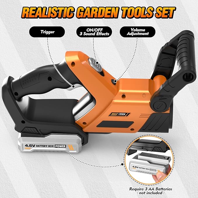 - 3-IN-1 Kids Yard Tools: This kids gardening tools toy can easily switch into kids weed wacker, toy leaf blower, and hedge trimmer toy, fully satisfying kids' daily imaginative play. These toy tools are perfect toys for 3+ year old boys who are always fascinated about the yard tools in Daddy’s garage