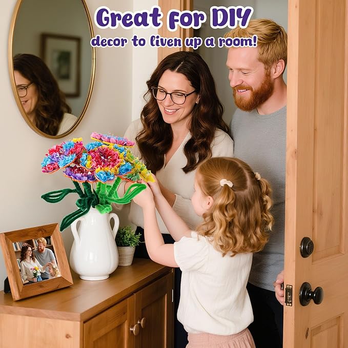 - [Beautiful Home Decor]: Finished bouquets can be placed in vases on desks, bedside tables, or living rooms. The art supplies for kids serve as charming decorations full of childhood fun and meaningful keepsakes of your child’s creativity, adding warmth and vibrancy to any home space
