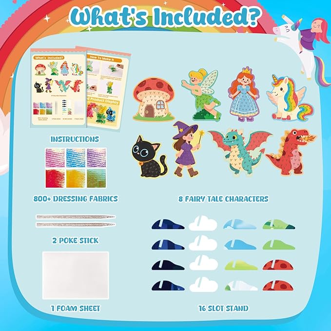- No Mess, No Glue Needed Simply poke fabric into the boards with the included tools—fun, clean, and safe for little hands