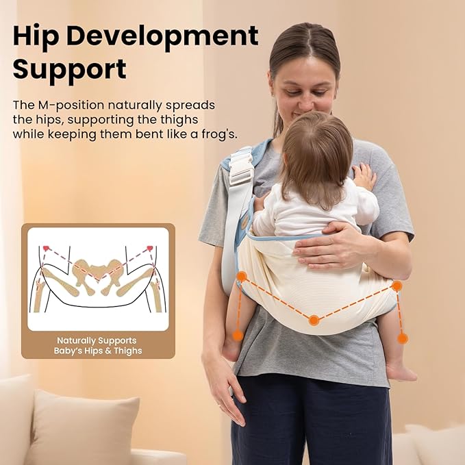 - 【Adjustable & Ergonomic Fit】This toddler sling carrier features dual front and back adjustable straps, offering a perfect fit for all body types, including plus-size parents. Its ergonomic M-shaped seat supports healthy hip development, making it ideal for long-term use from newborn to toddler.