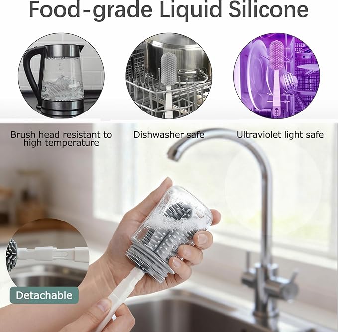 - Durable & Safe Material: Made from BPA-free, food-grade materials, this travel bottle cleaner kit is not only safe for your baby but also built to withstand daily use. Simply rinse it under running water after use and let it air dry. Except for the soap dispenser, the bottle brush set is dishwasher safe
