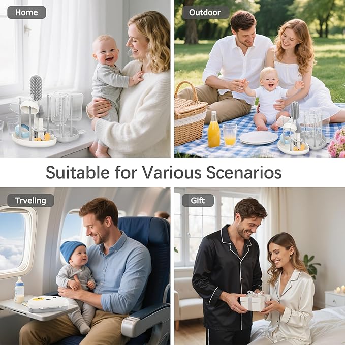 - Multi-Scenario Use: Compact bottle drying rack designed specifically for travel, allowing for fast and efficient drying anytime, anywhere, suitable for parent-child travel,family, airport, nursery room &other outdoor activities; Of course, you can also use it at home, compact and practical, convenient for storage
