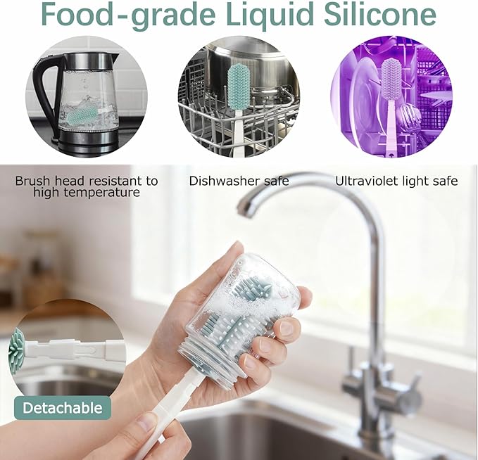 - Durable & Safe Material: Made from BPA-free, food-grade materials, this travel bottle cleaner kit is not only safe for your baby but also built to withstand daily use. Simply rinse it under running water after use and let it air dry. Except for the soap dispenser, the bottle brush set is dishwasher safe