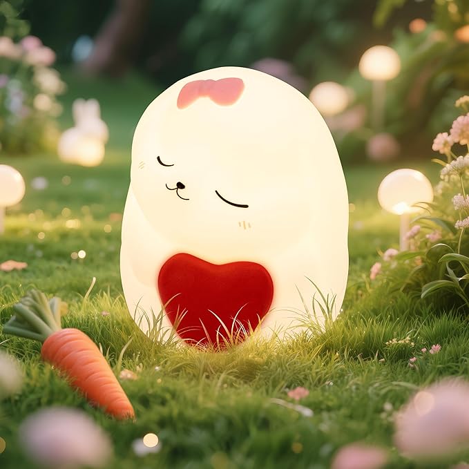 Night Light for Kids, Rechargeable Dimmable Silicone LED Nightlight with 7 Colors, Baby Nursery Night Lamp, Touch Squishy Lamp, Cute Gifts for Girls, Boys, Toddler Room Decor, Rabbit