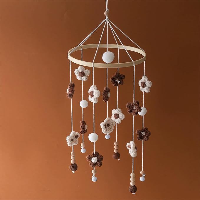 - This hand-crocheted baby mobile for crib features colorful little flowers with delicate details, creating a charming and soothing visual effect for your baby’s nursery, perfect for both boys and girls.