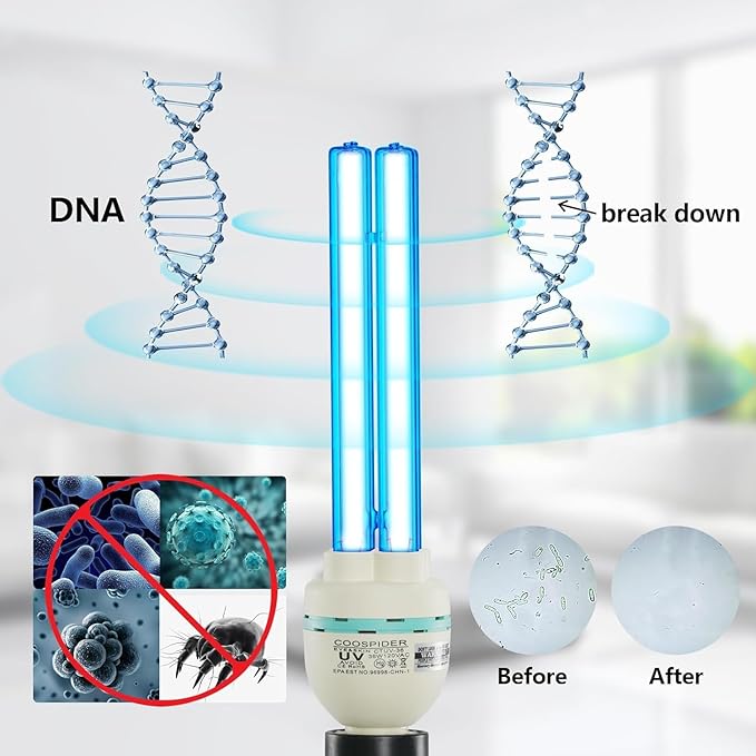- 【CAUTION】Human/Pets/Plants can’t be exposed to the UV Light! Must Leave the room when lamp is working. After use, there will be a smell of ozone in the room, please open the doors and windows to ventilate until the smell disappears (about 30 minutes).