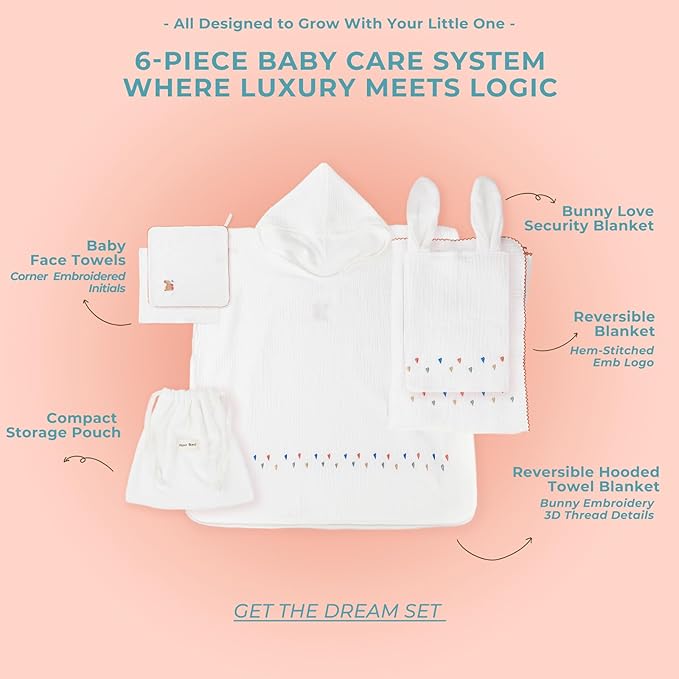 Poncho Muslin Towels for Kids Set of 6 for Embroidery,Baby Bath Towels with Muslin and Soft Terry Towel,24" x 24"Baby Beach Poncho with Seamless Pro Edge, Gifts for Boys and Girls