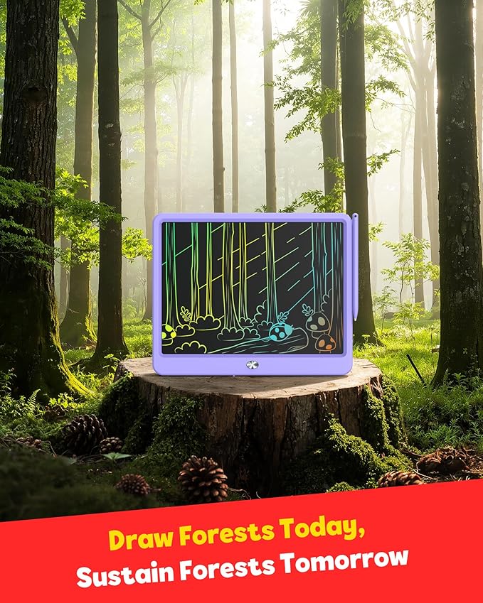 TEKFUN LCD Writing Tablet Doodle Board, 12inch Colorful Drawing Travel Essentials, Toddler Toys for 3 4 5 6 7 8 Year Old Girls Boys (Purple)