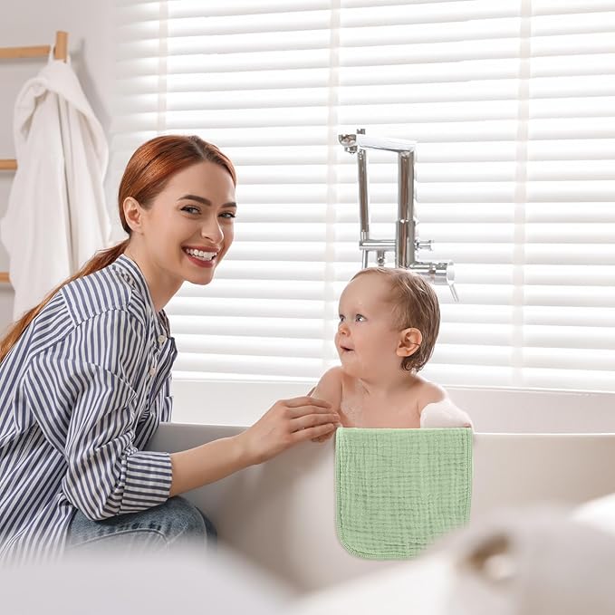 - Absorbent Infants Bath Towels: the baby bath towels and washcloths in this set boast 6 layers of muslin cotton; The quality muslin baby towels are adept at absorbing moisture from your baby's body quickly, ensuring they are dry and cozy after their bath; This ultra absorbency feature distinguishes these infant towels from the competition, making it the smart and efficient choice for baby care