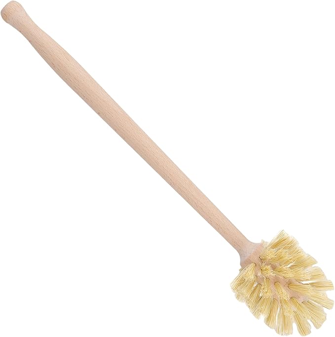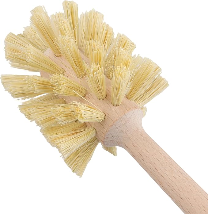 - LONG HANDLE DESIGN FOR- The wooden dish brush extended handle reaches narrow bottle deep cleaning necks and jar bases easily, like pitchers and vases. The rounded head cleans bottoms, sides, and necks thoroughly for spotless results every time.