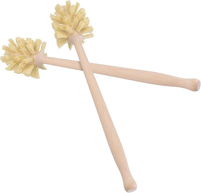 - VERSATILE KITCHEN SCRUB BRUSH - The wood bamboo brush bristles Ideal for washing water bottles, coffee pots, glass jars, and other kitchen items, remove tough stains without damage.Store in open air for quick drying.