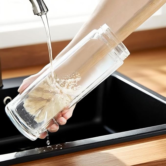 - Durable Material Design: The bottle brush crafted from solid beechwood and sisal bristles, this scrub brush offers lasting stability not easy fading or breaking, perfect for daily scrubbing tasks on tough residues like smoothies or coffee stains.