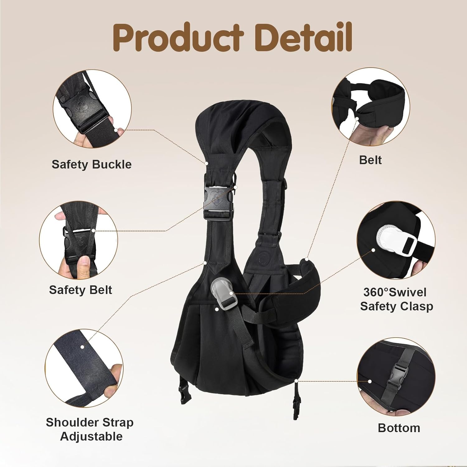 - [Upgrade Design]:This baby sling carrier comes with a separate waist harness.You can adjust the position of the harness on the baby's back according to the actual situation. The seat belt can be adjusted 360°to provide dual protection for the baby.