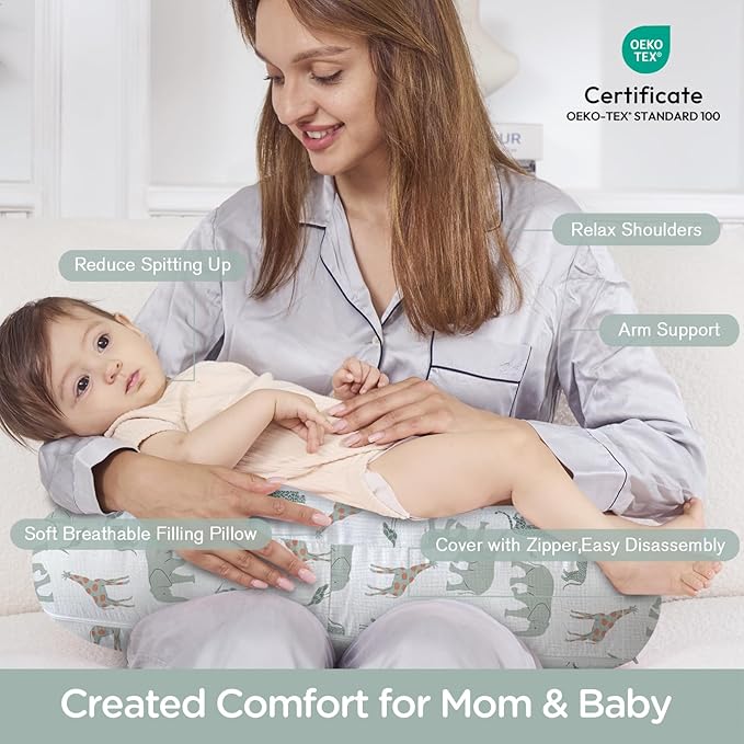 - 【SOFT & BREATHABLE】Made of 100% cotton muslin, our breastfeeding pillow is comfortable, breathable and gentle to touch. Suitable for any season, the cotton muslin breastfeeding pillow can bring a great experience for your baby.