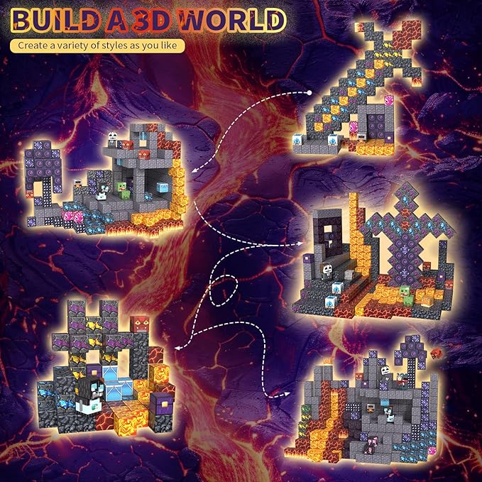 - Enhanced Magnetic Strength & Compatibility - Each oversized 0.8-inch cube contains 8 high-performance magnets, providing exceptional connection power. Demonstrates remarkable stability with half-block connections and maintains full compatibility with major magnetic block brands, enabling expanded creative possibilities through combined sets