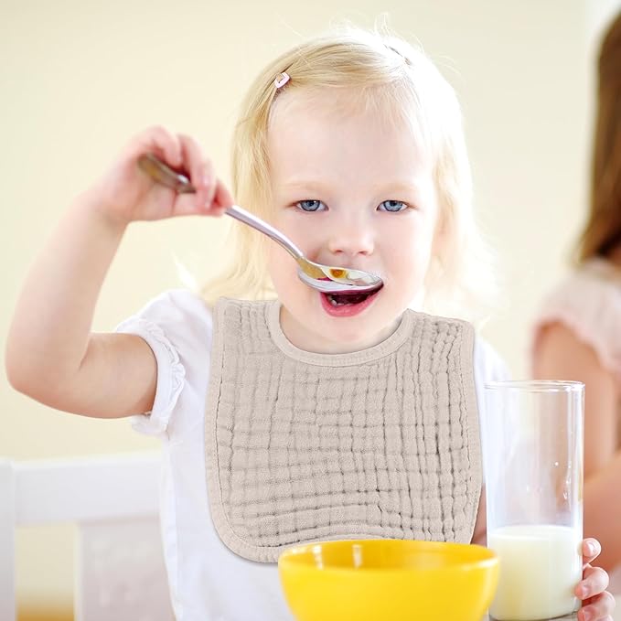 Tallew 8 Pack Baby Bibs and Muslin Burps for Baby Boy Girl Drooling and Teething 20" x 10" Burp Cloths Absorbent Rag Soft Cotton Bibs for Newborn Toddler Infant 0-24 Month Essentials(Brown Series)